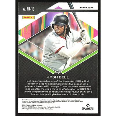 This is a 2021 Panini Prizm Fearless Silver Josh Bell baseball card. The card is #FR-19 and pictures show condition.