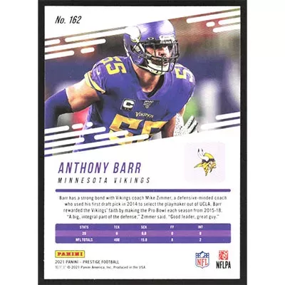 This is a 2021 Prestige Anthony Barr football card. The card is #162 and pictures show condition.