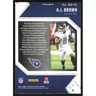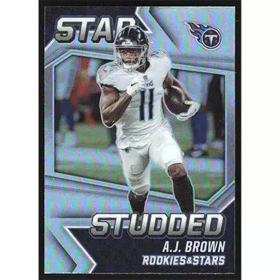 This is a 2021 Rookies & Stars Star Studded Silver A.J. Brown football card. The card is #SS-10 and pictures show condition.