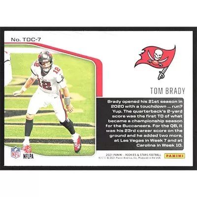 This is a 2021 Rookies & Stars Touchdown Club Tom Brady football card. The card is #TDC-7 and pictures show condition. Team: Tampa Bay Buccaneers