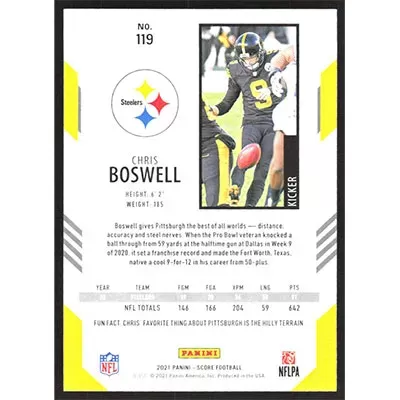 This is a 2021 Score Chris Boswell football card. The card is #119 and pictures show condition.