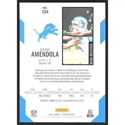 This is a 2021 Score Danny Amendola football card. The card is #134 and pictures show condition.