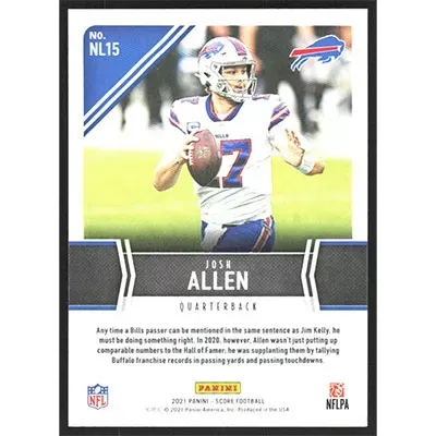 This is a 2021 Score Next Level Stats Josh Allen football card. The card is #NL15 and pictures show condition.