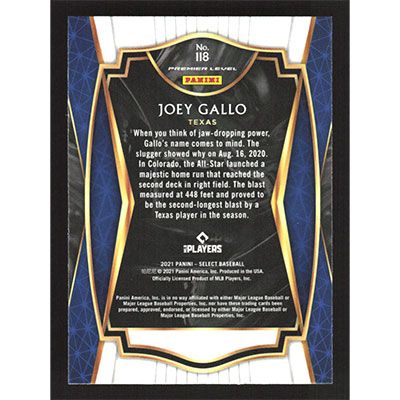 This is a 2021 Select Joey Gallo Premier baseball card. The card is #118 and pictures show condition.