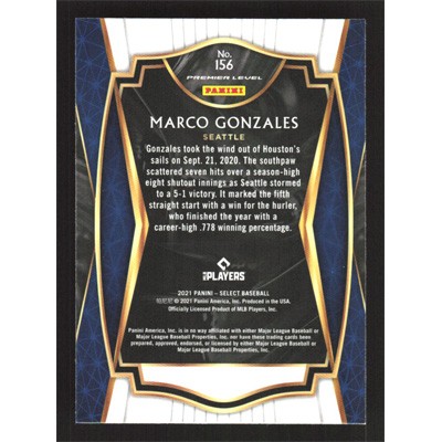 This is a 2021 Select Marco Gonzales Premier baseball card. The card is #156 and pictures show condition.