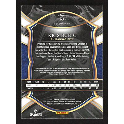 This is a 2021 Select Kris Bubic baseball card. The card is #63 and pictures show condition.