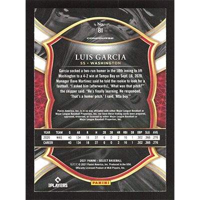 This is a 2021 Select Luis Garcia baseball card. The card is #81 and pictures show condition.