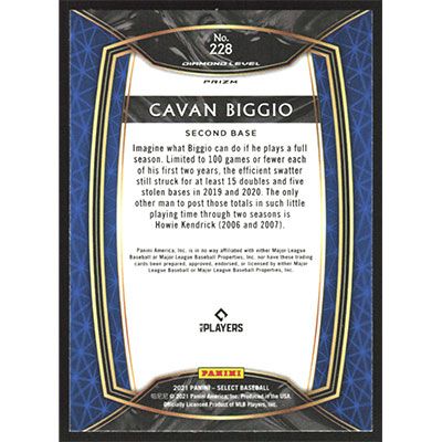 This is a 2021 Select Holo Cavan Biggio baseball card. The card is #228 and pictures show condition.