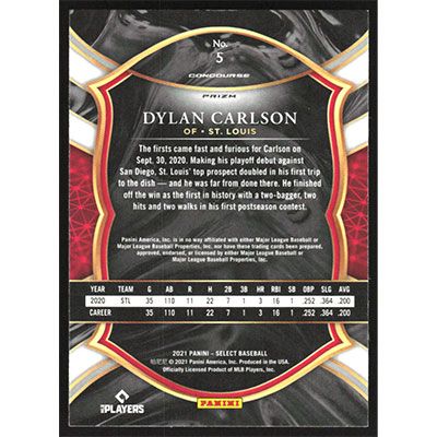 This is a 2021 Select Scope Dylan Carlson baseball card. The card is #5 and pictures show condition.
