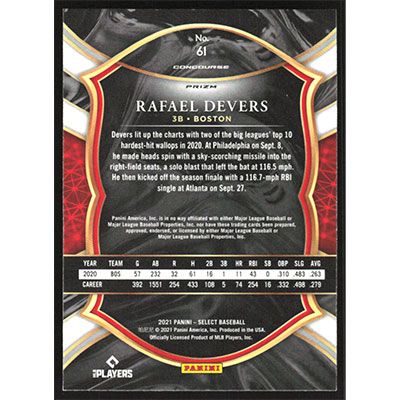 This is a 2021 Select Scope Rafael Devers baseball card. The card is #61 and pictures show condition.