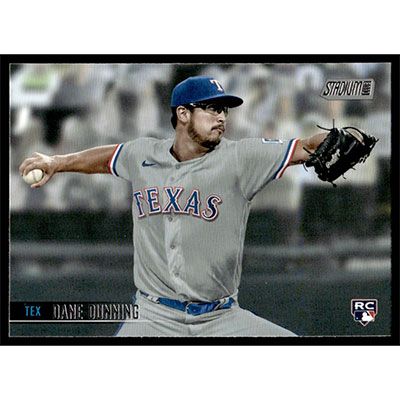This is a 2021 Stadium Club Dane Dunning baseball card. The card is #61 and pictures show condition.