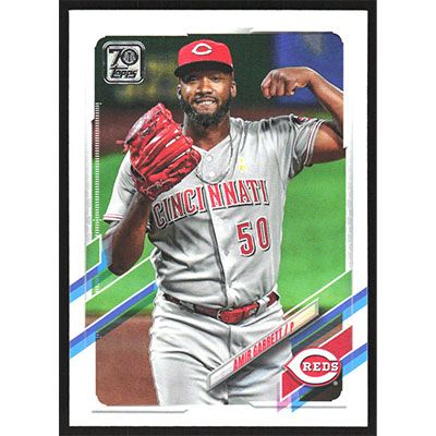 This is a 2021 Topps Amir Garrett baseball card. The card is #124 and pictures show condition.
