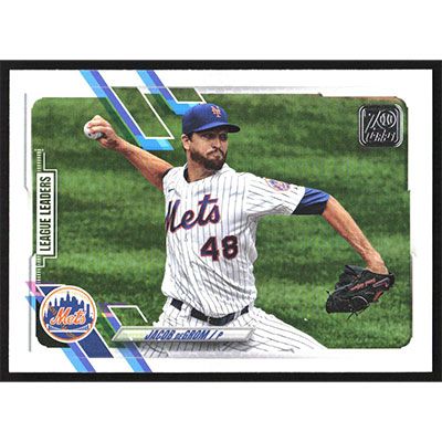 This is a 2021 Topps Jacob deGrom League Leaders baseball card. The card is #170 and pictures show condition.