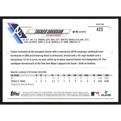 This is a 2021 Topps Tucker Davidson baseball card. The card is #423 and pictures show condition.