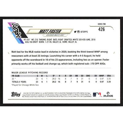 This is a 2021 Topps Matt Foster baseball card. The card is #426 and pictures show condition.
