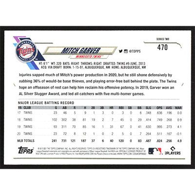 This is a 2021 Topps Mitch Garver baseball card. The card is #470 and pictures show condition.