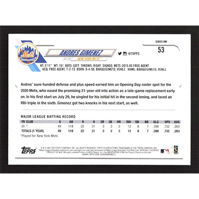 This is a 2021 Topps Andres Gimenez baseball card. The card is #53 and pictures show condition.