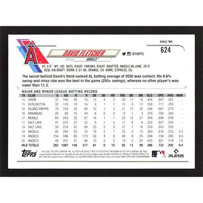 This is a 2021 Topps David Fletcher baseball card. The card is #624 and pictures show condition.