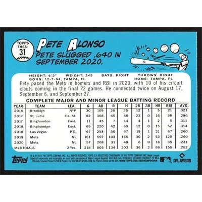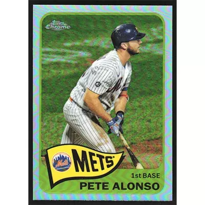 This is a 2021 Topps '65 Redux Chrome Pete Alonso baseball card. The card is #TH65-31 and pictures show condition.