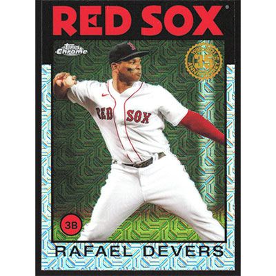 This is a 2021 Topps '86 Silver Pack Chrome Rafael Devers baseball card. The card is #86BC-59 and pictures show condition.