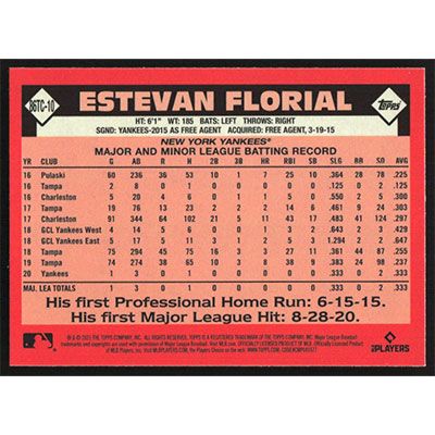 This is a 2021 Topps '86 Silver Pack Chrome Estevan Florial baseball card. The card is #86TC-10 and pictures show condition. Team(s): New York Yankees Rookie Card (RC)