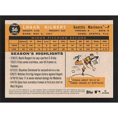 This is a 2021 Topps All-Star Rookie Cup Logan Gilbert baseball card. The card is #56 and pictures show condition.