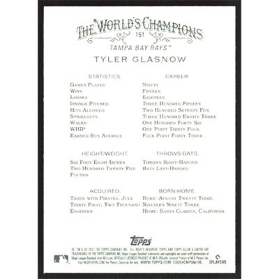 This is a 2021 Topps Allen & Ginter Tyler Glasnow baseball card. The card is #151 and pictures show condition.