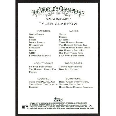 This is a 2021 Topps Allen & Ginter Chrome Tyler Glasnow baseball card. The card is #151 and pictures show condition.