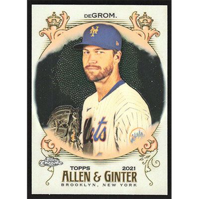 This is a 2021 Topps Allen & Ginter Chrome Jacob deGrom baseball card. The card is #90 and pictures show condition.