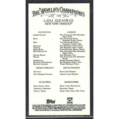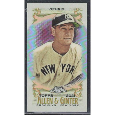 This is a 2021 Topps Allen & Ginter Chrome Mini Lou Gehrig baseball card. The card is #119 and pictures show condition.