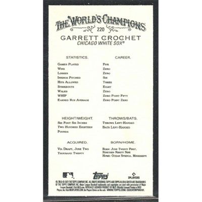 This is a 2021 Topps Allen & Ginter Mini Garrett Crochet baseball card. The card is #220 and pictures show condition. Team(s): Chicago White Sox Rookie Card (RC)