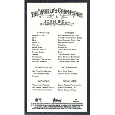 This is a 2021 Topps Allen & Ginter Mini Josh Bell baseball card. The card is #5 and pictures show condition.