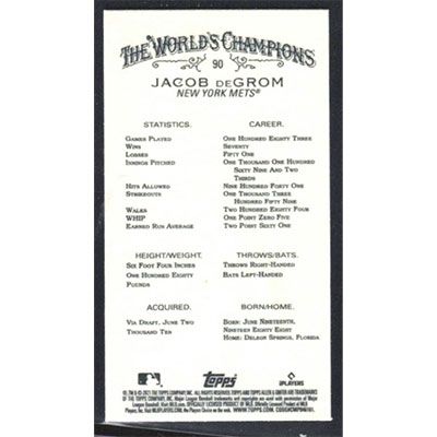 This is a 2021 Topps Allen & Ginter Mini Jacob deGrom baseball card. The card is #90 and pictures show condition.