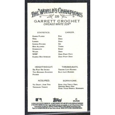 This is a 2021 Topps Allen & Ginter Mini Black Garrett Crochet baseball card. The card is #220 and pictures show condition. Team(s): Chicago White Sox Rookie Card (RC)