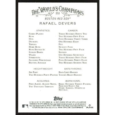 This is a 2021 Topps Allen & Ginter X Rafael Devers baseball card. The card is #253 and pictures show condition.
