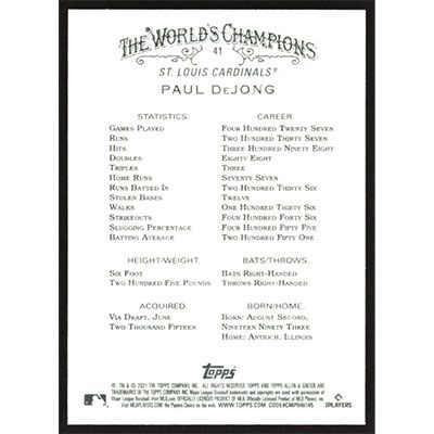 This is a 2021 Topps Allen & Ginter X Paul DeJong baseball card. The card is #41 and pictures show condition.