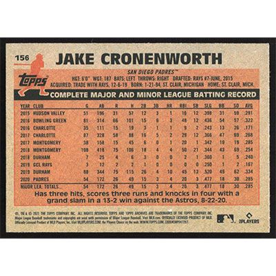 This is a 2021 Topps Archives Jake Cronenworth baseball card. The card is #156 and pictures show condition. Team(s): San Diego Padres Rookie Card (RC)