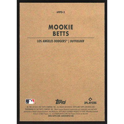 This is a 2021 Topps Archives '63 Peel-Offs Mookie Betts baseball card. The card is #69PO-3 and pictures show condition.