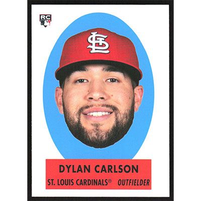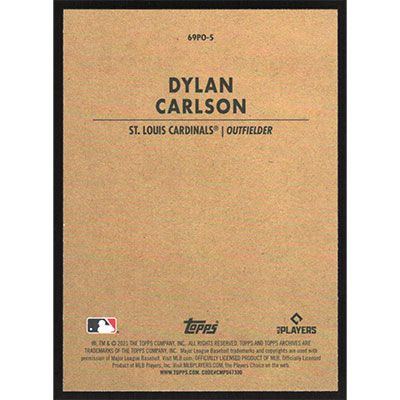 This is a 2021 Topps Archives '63 Peel-Offs Dylan Carlson baseball card. The card is #69PO-5 and pictures show condition. Team(s): St. Louis Cardinals Rookie Card (RC)