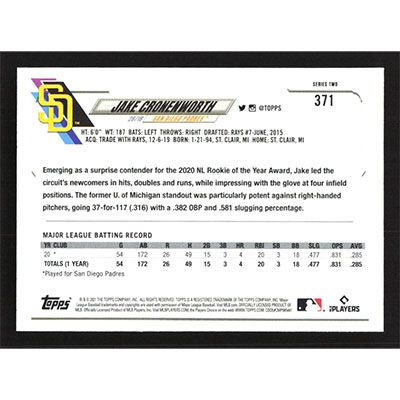 This is a 2021 Topps Base Set Photo Variations Jake Cronenworth short print (Back of Jersey) baseball card. The card is #371 and pictures show condition.