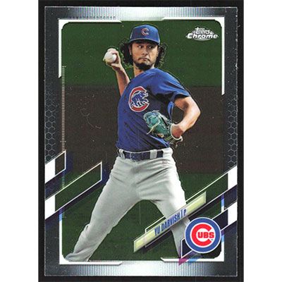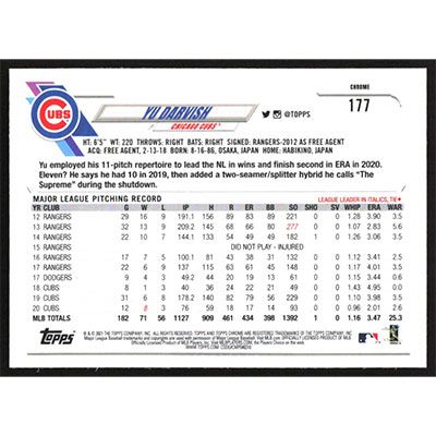 This is a 2021 Topps Chrome Yu Darvish baseball card. The card is #177 and pictures show condition.