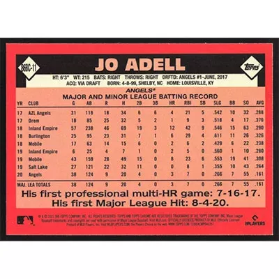 This is a 2021 Topps Chrome '86 Jo Adell baseball card. The card is #86BC-11 and pictures show condition. Team(s): Los Angeles Angels Rookie Card (RC)