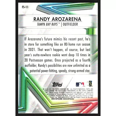 This is a 2021 Topps Chrome Future Stars Randy Arozarena baseball card. The card is #FS-11 and pictures show condition.