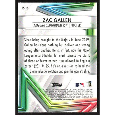 This is a 2021 Topps Chrome Future Stars Zac Gallen baseball card. The card is #FS-18 and pictures show condition.