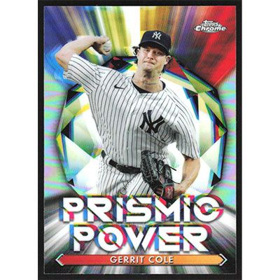 This is a 2021 Topps Chrome Prismic Power Gerrit Cole baseball card. The card is #PP-5 and pictures show condition.