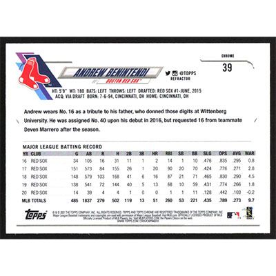 This is a 2021 Topps Chrome Sepia Refractors Andrew Benintendi baseball card. The card is #39 and pictures show condition.