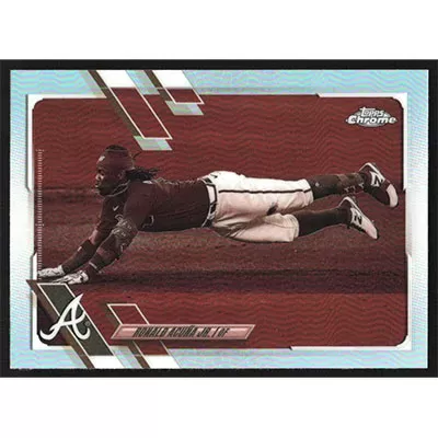 This is a 2021 Topps Chrome Sepia Refractors Ronald Acuña Jr. baseball card. The card is #50 and pictures show condition.
