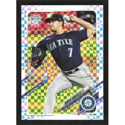 This is a 2021 Topps Chrome X-Fractors Marco Gonzales baseball card. The card is #152 and pictures show condition.
