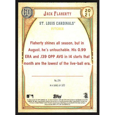 This is a 2021 Topps Gypsy Queen Jack Flaherty baseball card. The card is #274 and pictures show condition.