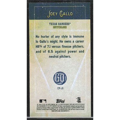 This is a 2021 Topps Gypsy Queen Captains Mini Joey Gallo baseball card. The card is #CM-JG and pictures show condition.